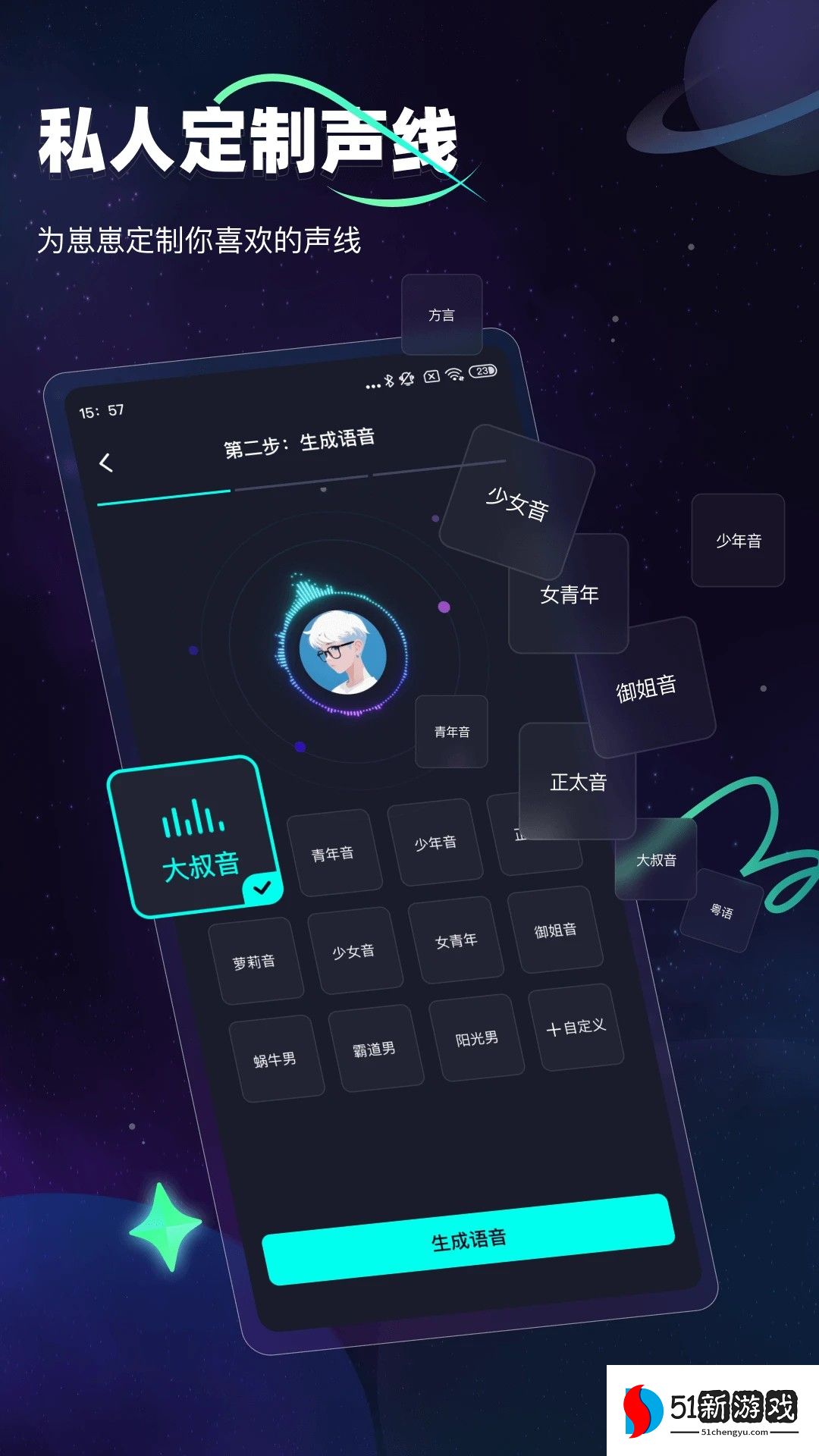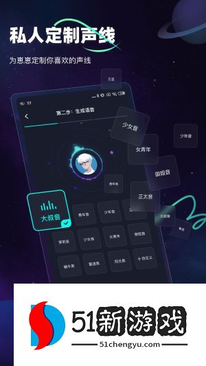2. 进入自定义语音界面后,您可以根据个人喜好从多种语音类型中进行选择,单击“生成”按钮,快速生成专属语音。