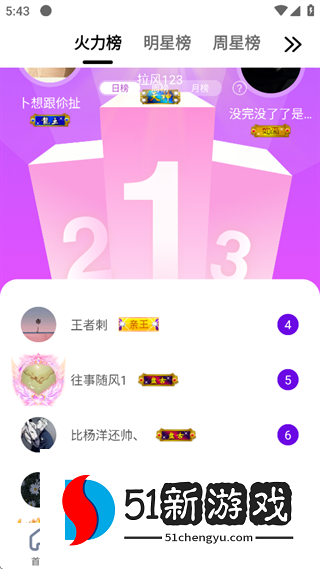 2、榜单板块可以查看火力榜、明星榜、周星榜。