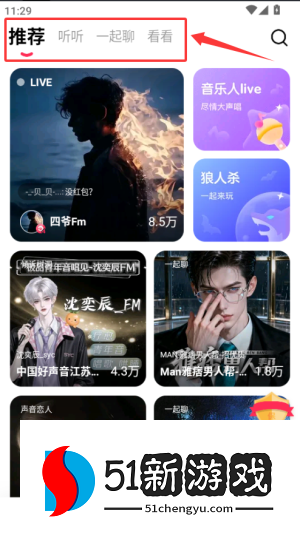 3、通过推荐或听听等分类栏目,可观看各类直播内容。