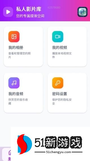 2、首页采用模块化功能分区,集成媒体库管理与安全加密设置入口。