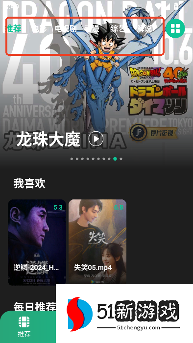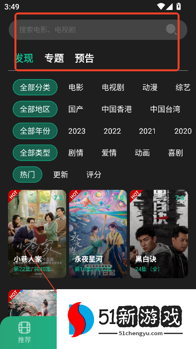 2、首页可以查看影视推荐,选择影视分类。
