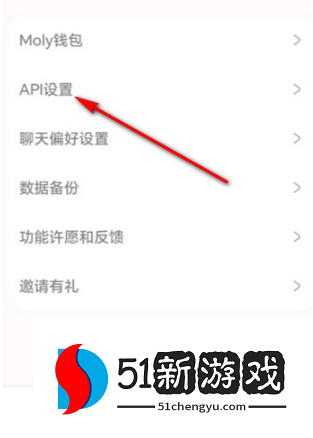 3、点击API设置。