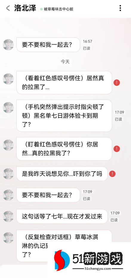 4、当你拉黑角色后,会给你发消息,消息列表的头像也会变成灰色的,还是很有活人感很有趣的。