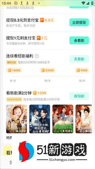 3、新人看完短剧后,可立即提现1元。