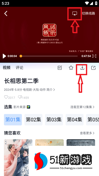 2、点开你喜欢的影片,你可以看到可以投屏,可以下载。