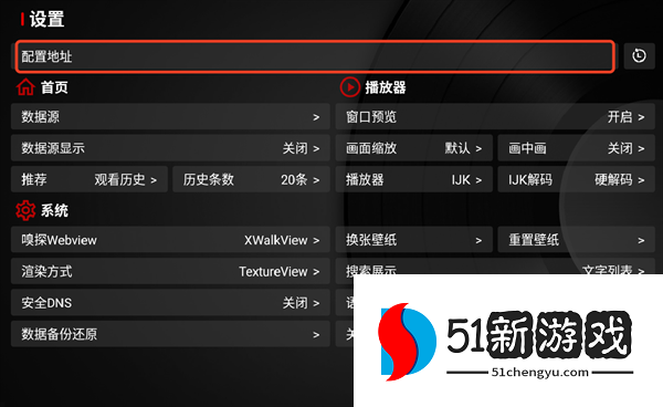 2、在设置内容中,调整播放地址以及播放器的播放设置。