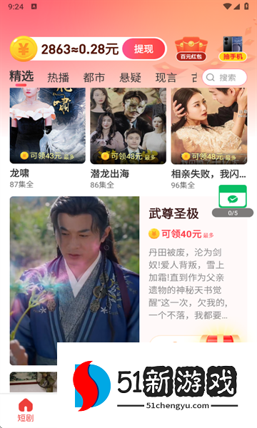 5、观看短剧,参与签到、分享、评论等活动,领取奖励红包。
