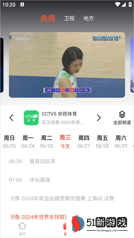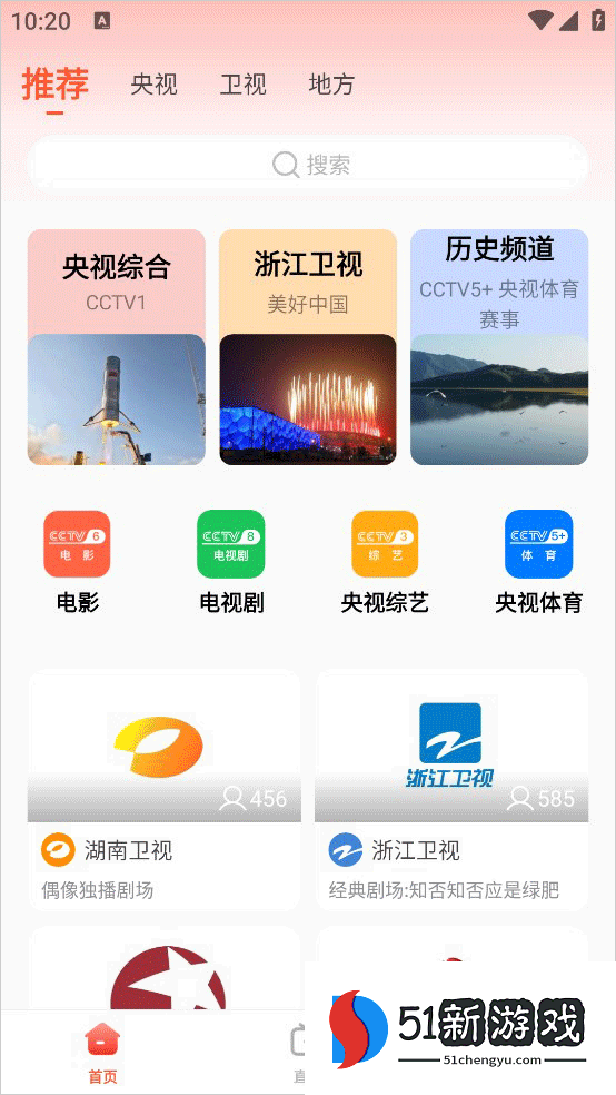 1、打开下载好的电视软件,直接在首页有着许多经典热门频道。
