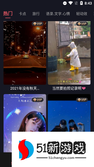 为用户推送当下热门、流行、卡点、旅游等最近超火的编辑素材。