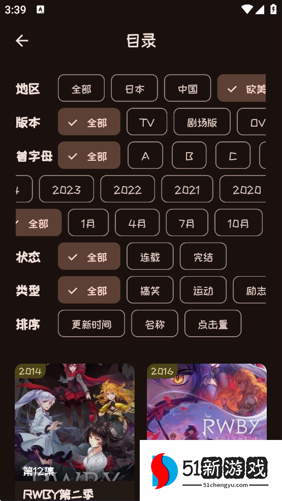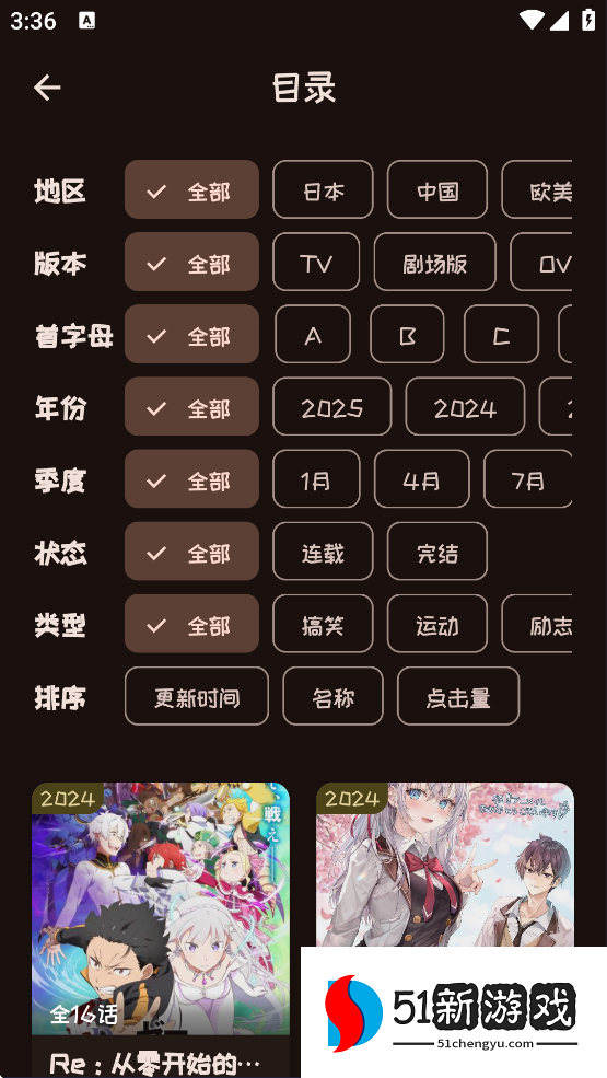 2、进入到分类目录里,用户可以按照自己的兴趣来筛选动漫。