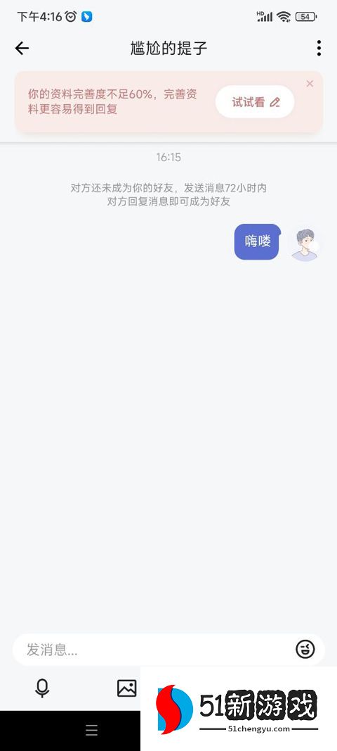 4、之后即可朝对方发送消息进行搭讪了。