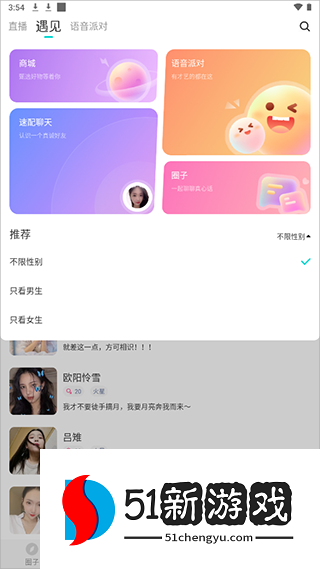 3、在【遇见】页面下可以通过筛选功能快速帮你处cp。