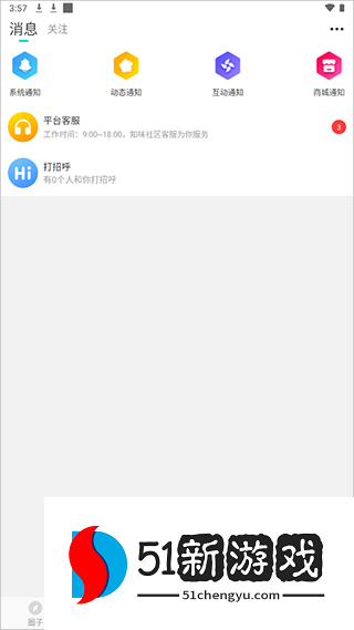 4、消息页面下可以对好友消息和平台消息进行统一管理,而且关注的好友动态也可以在这里第一时间呈现。