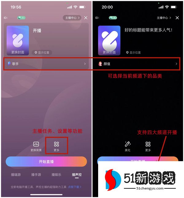 1、开播前请选择正确分区和进行相应的开播前设置。