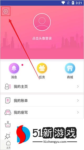 1、在“我的”页面,点击左上角“小齿轮”图标按钮。