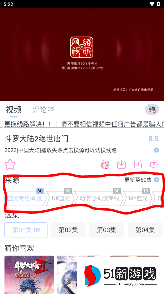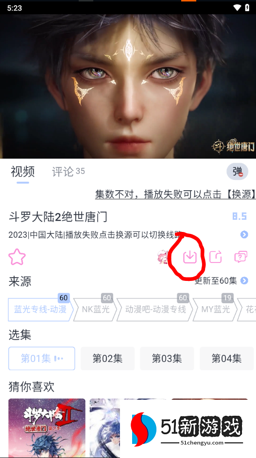 4、如遇卡顿,可以点击下方的来源进行换源播放。