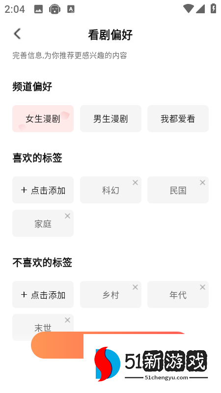 2、选择频道偏好和添加喜欢或不喜欢的标签,最后点击【确认选择】即可