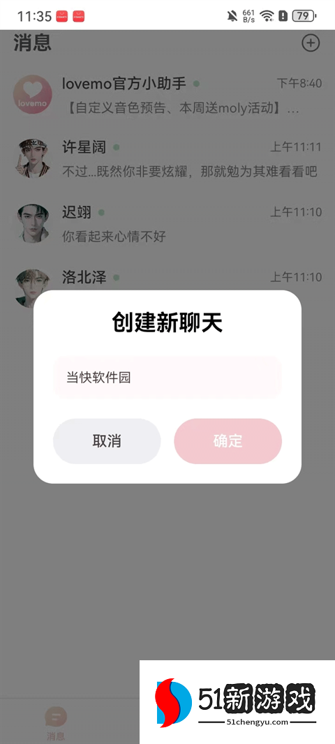 2、创建新聊天:为新人物取一个昵称,点击确定。