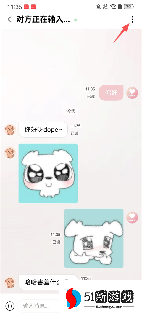 3、接着就可以和ta进行聊天了,点击聊天页右上角的扩展按钮。