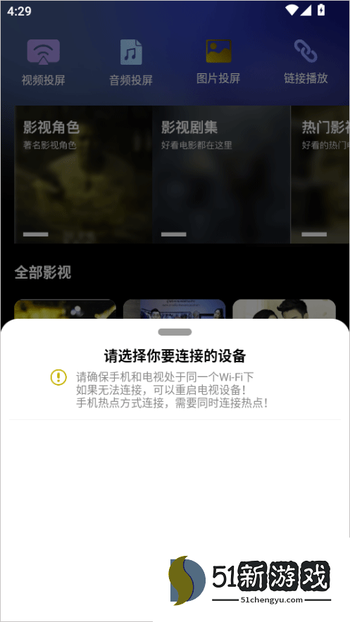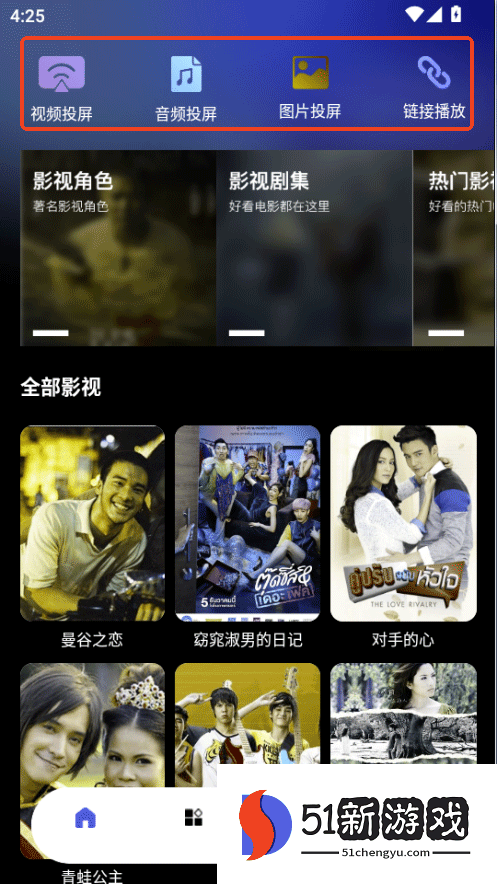 1、在本站下载安装泰剧兔,运行软件,可以看到有视频投屏、音频投屏等等,还有各种影视。