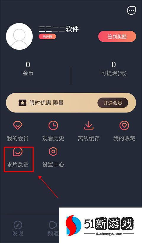 5、如果没有搜索到自己想看的,也不用着急,可以点击“我的”-“求片反馈”进行留言即可。