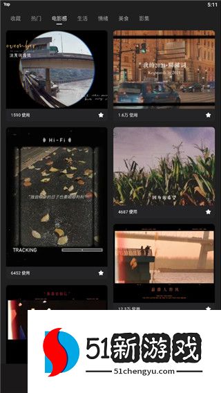 4、在配方里面点击电影感,使用里面的模板可以让你也能拍出好莱坞电影大片的既视感。
