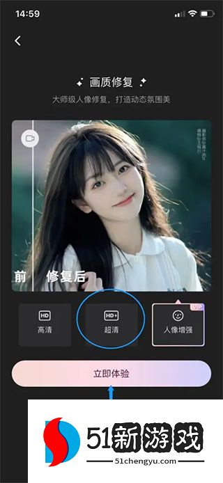 3、在界面中选择【超清】、【立即体验】选项点击即可。