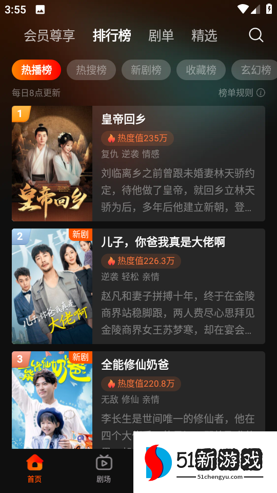 2、如果找不到合适的短剧,也可以打开排行榜,根据排行榜列表进行选择。