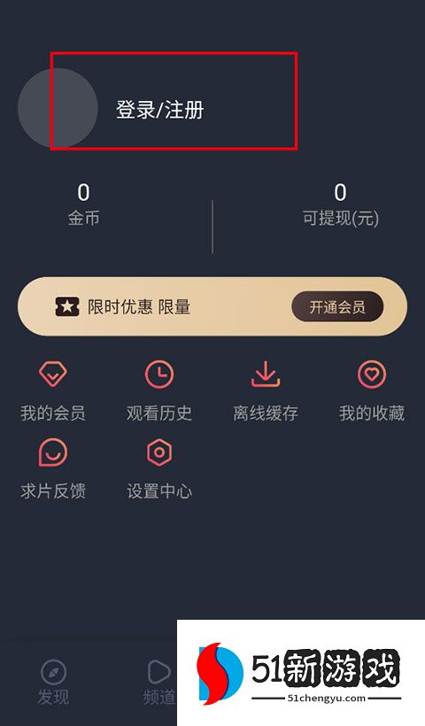 1、打开泰剧兔,进入“我的”页面,点击“登录/注册”。