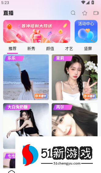 1、直接打开下载好的直播软件,在首页浏览实时内容。