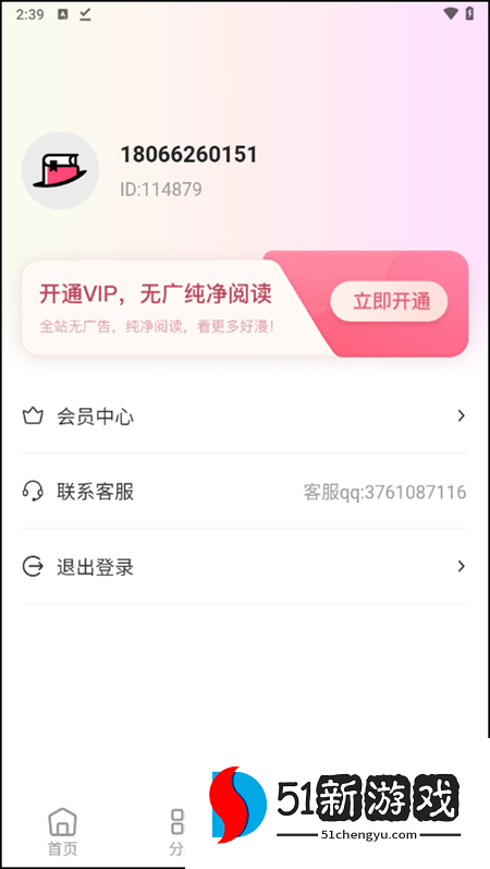 4、在我的界面中,我们可以完成帐户注册和登录操作,以及VIP激活操作,这样我们就可以体验到一个没有广告的纯粹阅读环境。