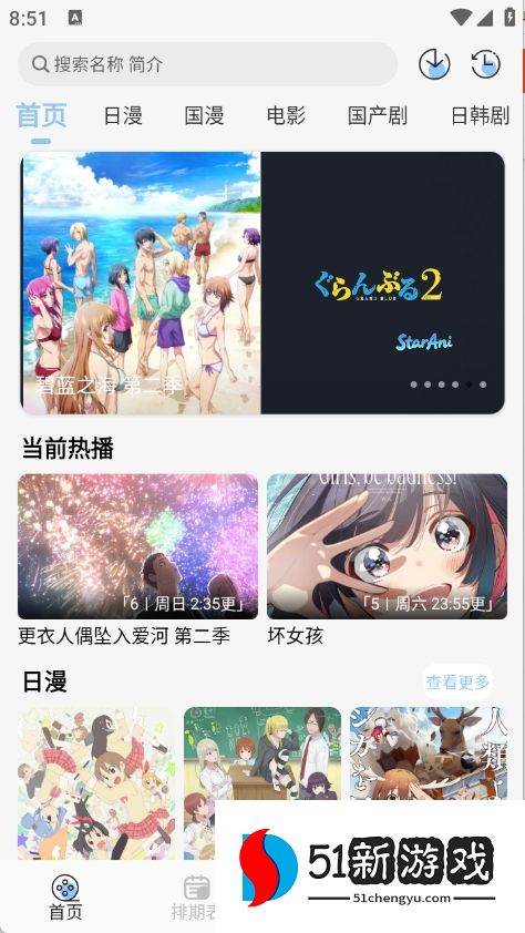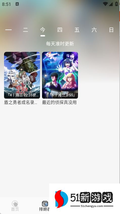 3、排期表提供每天动漫更新情况。