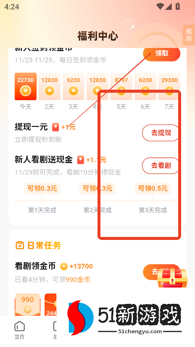 2、观看广告赚取佣金:用户在观看短剧前需要观看一定时长的广告,可以获得相应奖励。