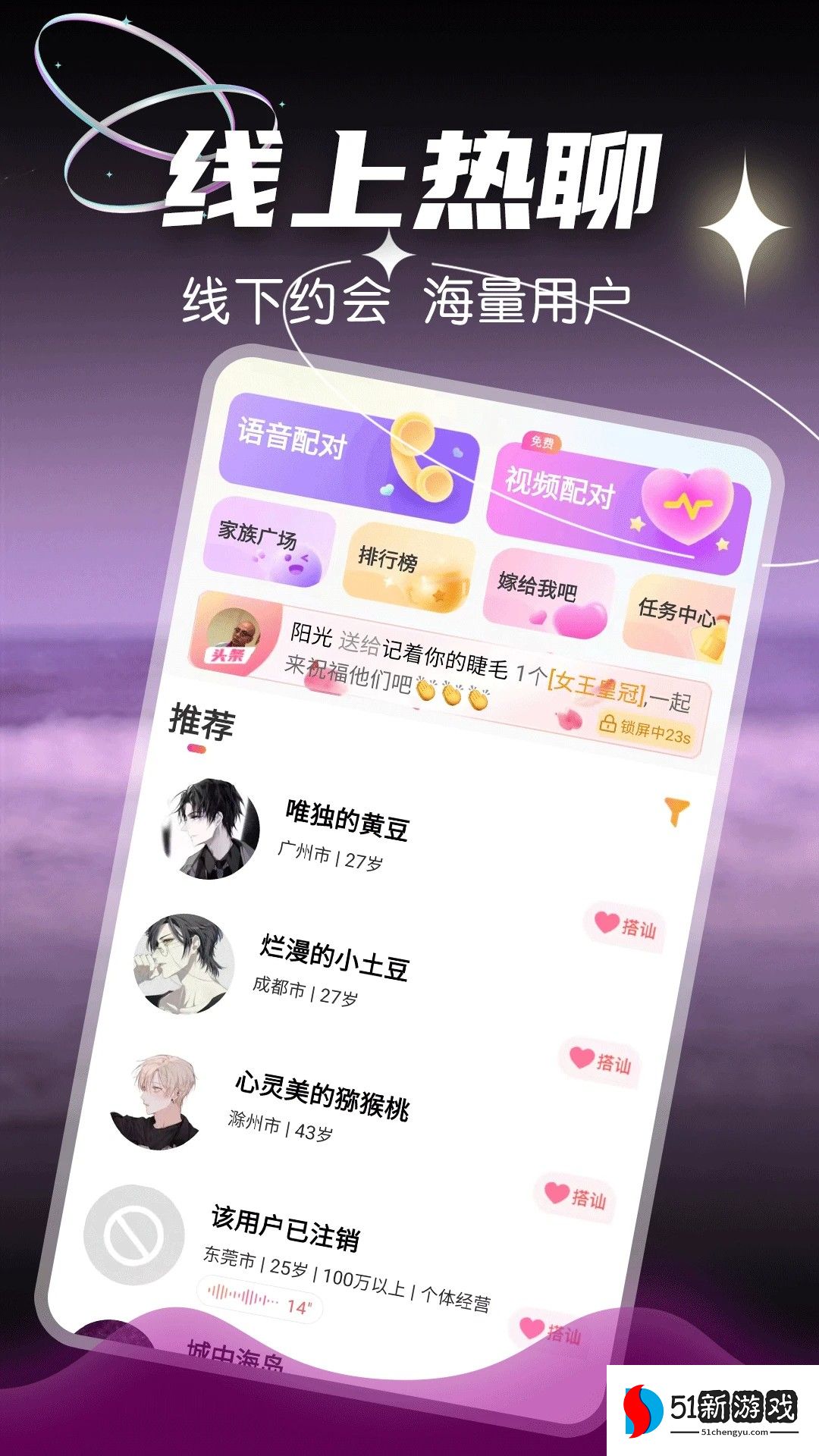3、多种约会方式:提供在线聊天、线下会议等多种约会方式,满足用户不同的约会需求。