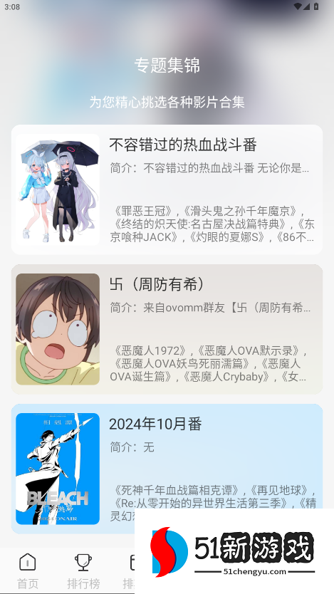 1、热门排名:我们为一些热门动漫作品创建了独家排名,您可以通过查看排名找到您最喜欢的资源;