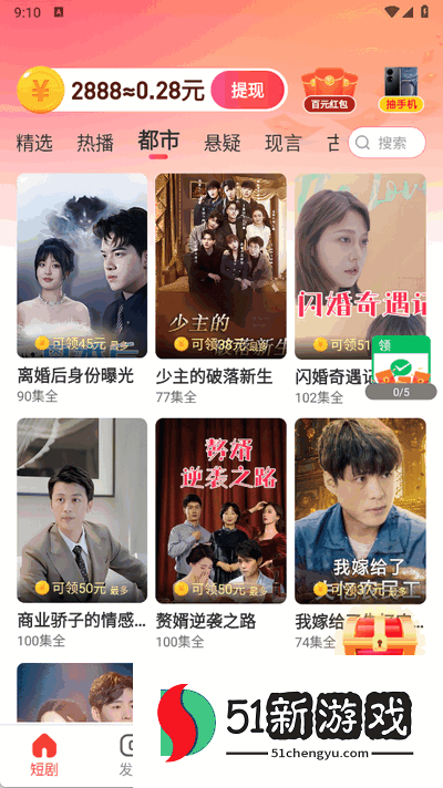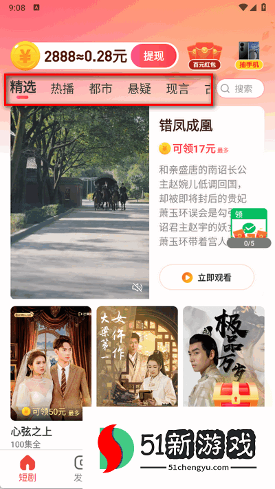 1、打开软件,进入主页,那里有各种类型的短剧可供选择。