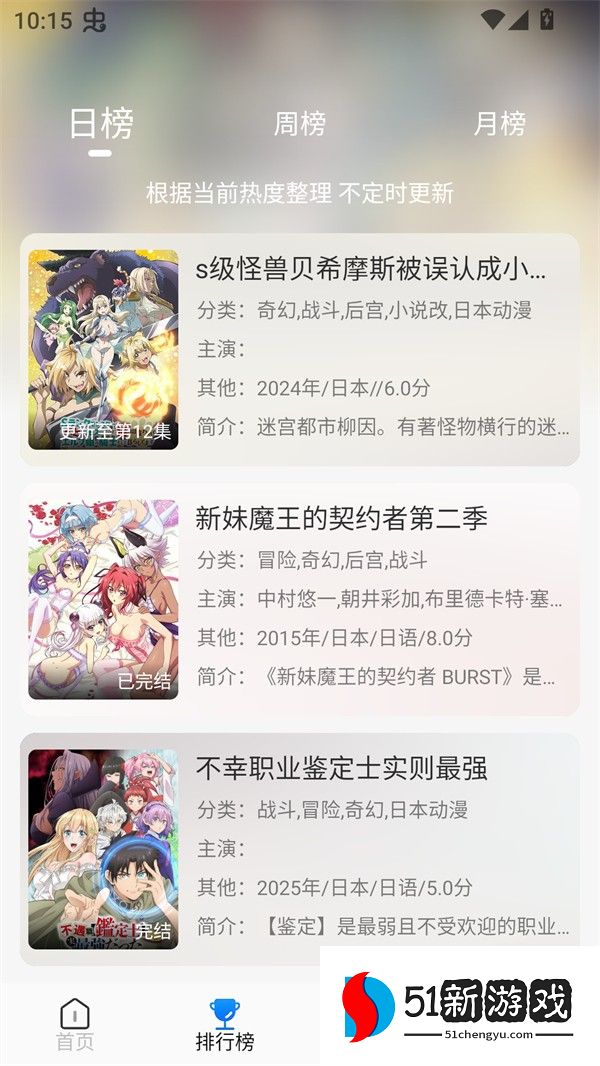 3、每天更新数百个视频,了解最新的动画和漫画资源,您可以实时观看您最喜欢的动画和动漫。