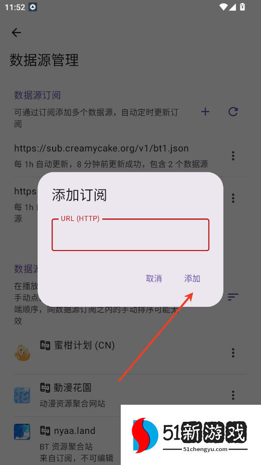 4、输入你的源后点击添加即可。