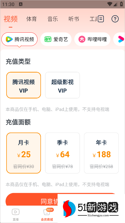 2、提供专属会员权益,用户在这里可以购买各大平台的会员,涵盖视频、体育、音乐、听书等等