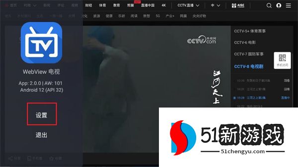 1、本站下载打开WebView电视,打开设置