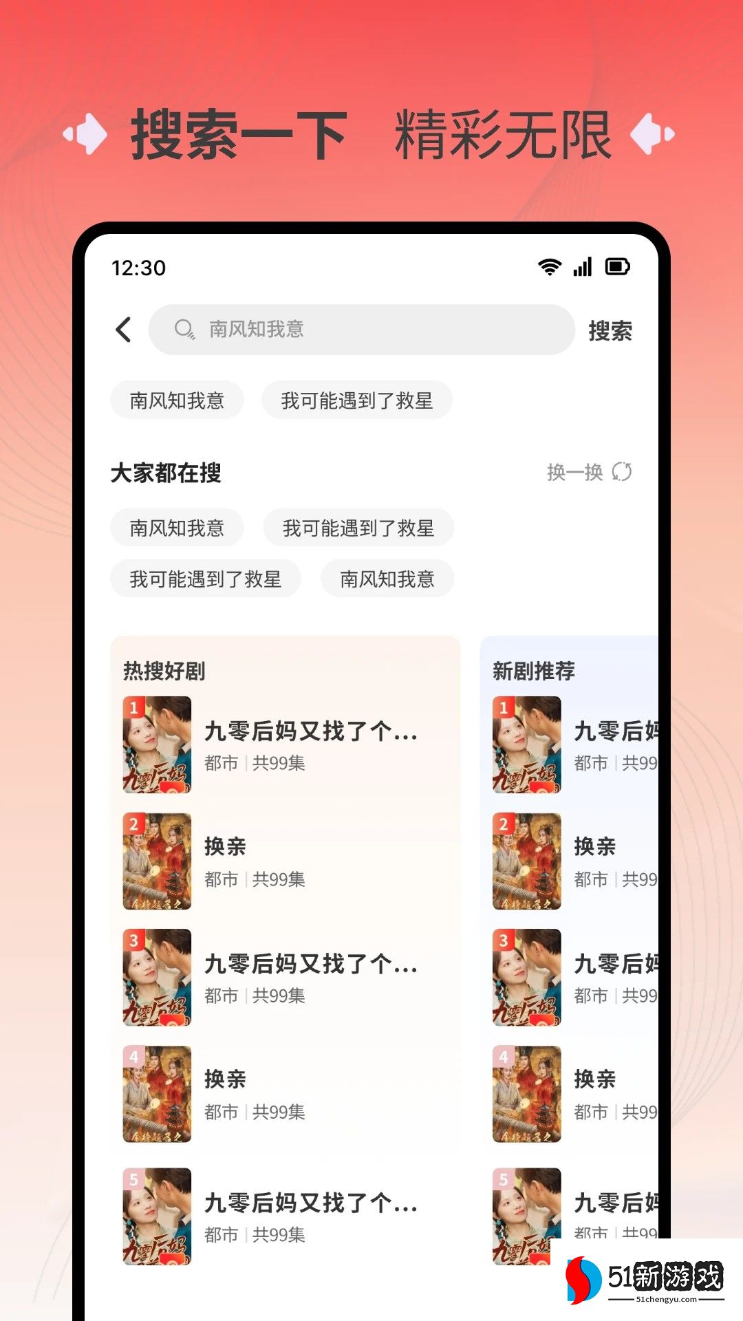 1、添加智能搜索功能:配备智能搜索功能,用户可以轻松找到他们感兴趣的短剧资源,省去繁琐的搜索过程。