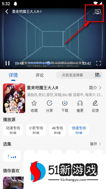 1、打开软件点击想下载的动漫,进入播放界面,然后点击下载按钮。