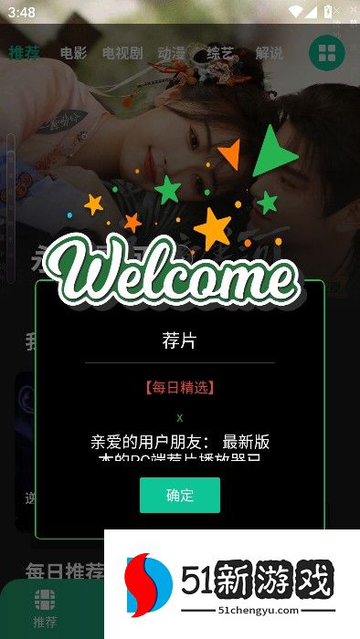 1、下载安装荐片影视,点击确认进入首页。