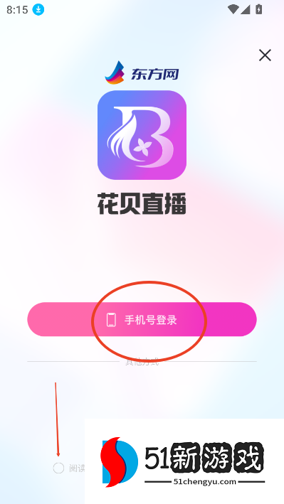 3、点击手机号登录,勾选隐私协议。
