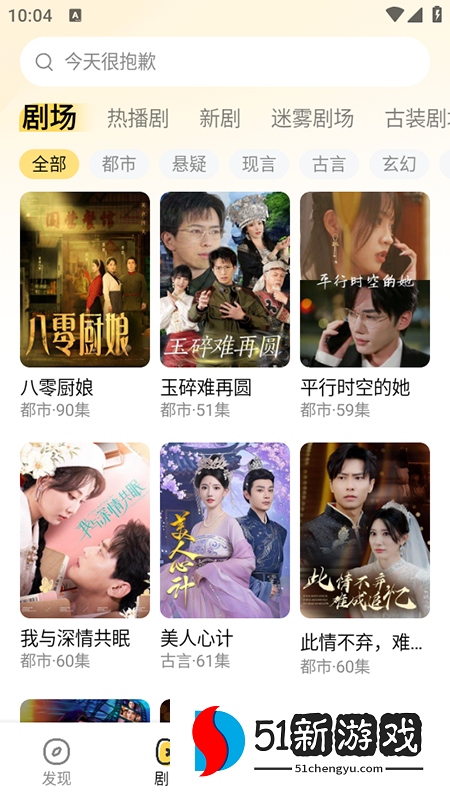 1、下载、安装并打开本网站上的软件。进入软件主页查看推荐的短剧,或点击“剧院”按城市、悬疑、时事、古剧等类别搜索短剧。