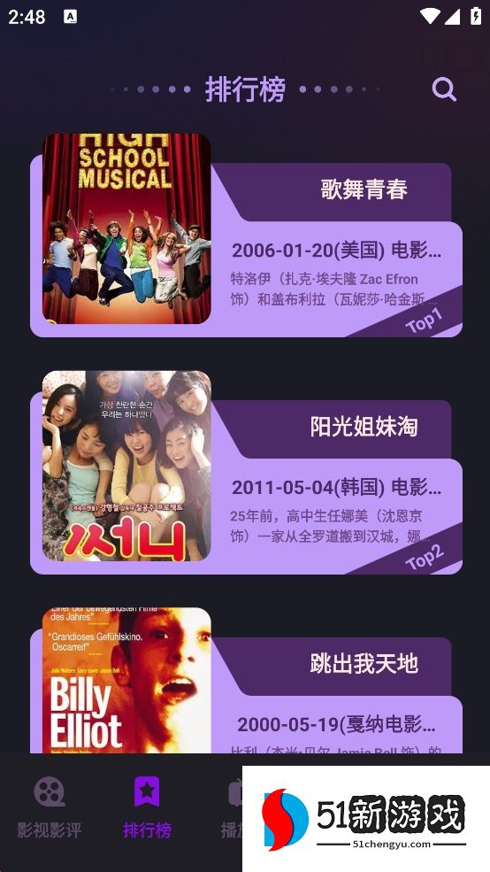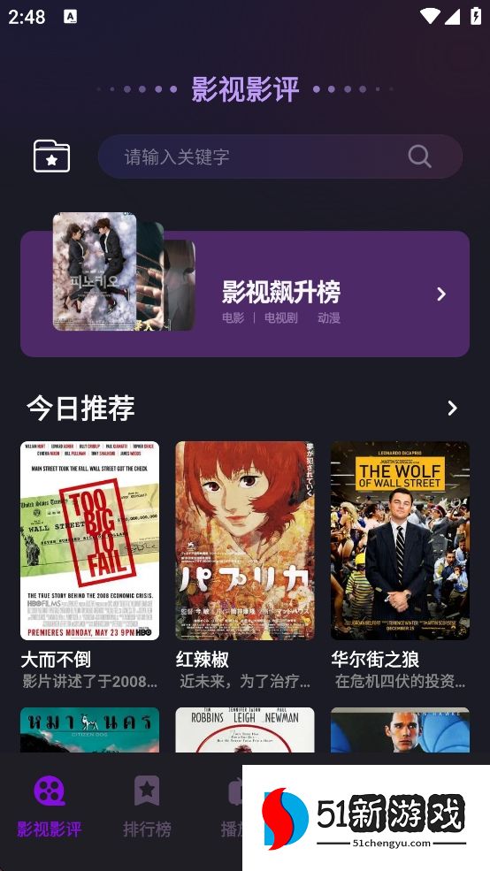 1、主页为每个人推荐热门电影评论,并提供飙升的电影和电视排行榜。