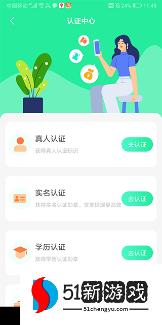 1、用户使用手机号登录后即可进入【我的】页面下点击认证,进入认证中心完成认证也可正常使用。