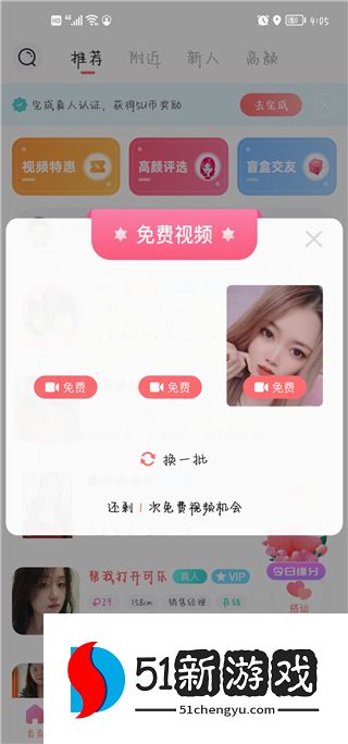 5、进入视频,用户每天有一次免费视频的机会可以和其他用户进行视频。