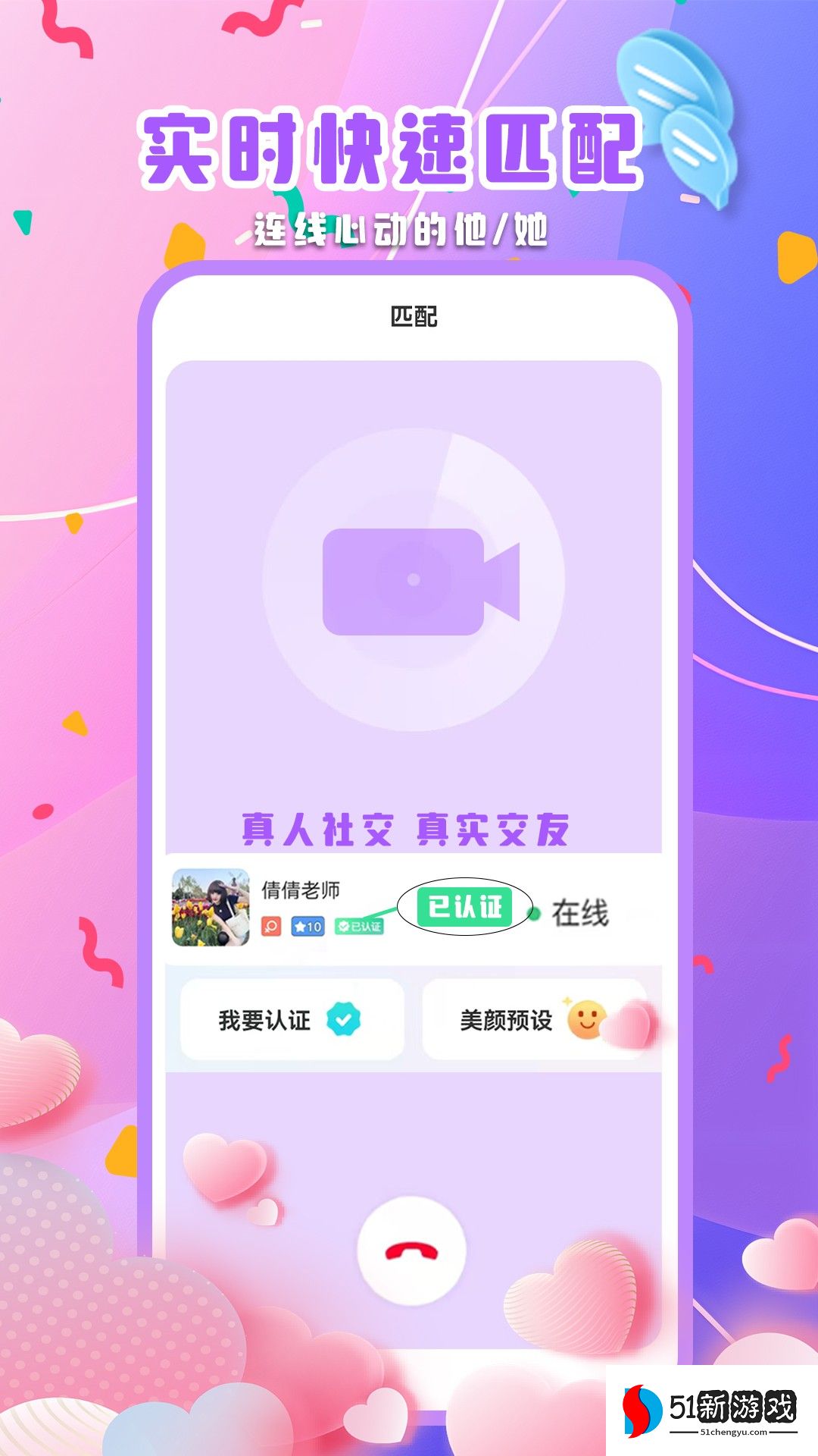 2、视频速配功能一键启动,随机匹配单身异性,面对面视频聊天,让交友更加直观真实。