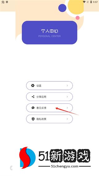 5、在个人中心页面,有反馈和分享应用程序等功能。如果你有好的建议,你可以把它们还给官方,并留下你的联系方式。